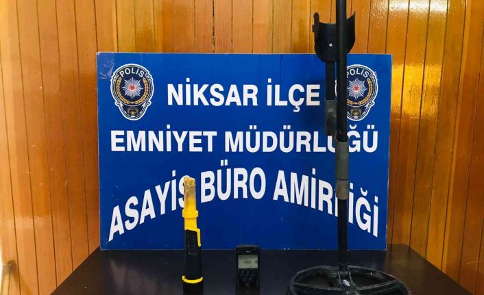 Edinilen bilgiye göre, Niksar İlçe Emniyet Müdürlüğü Asayiş ekipleri, TOKİ konutları yakınlarındaki arazide kaçak kazı yapıldığı bilgisini alarak operasyon düzenledi. Polis ekiplerini karşılarında gören şahıslar, otomobile binerek kaçmaya çalıştı. Kısa süren kovalamacanın ardından ekipler tarafından yakalanan şahısların üzerinde arama yapıldı. Yapılan aramada 5 adet tarihi eser niteliği taşıdığı düşünülen madeni para, 2 adet el dedektörü ele geçirildi. Şüpheli 4 şahıs hakkında 2863 SKM’den adli işlem başlatıldı.