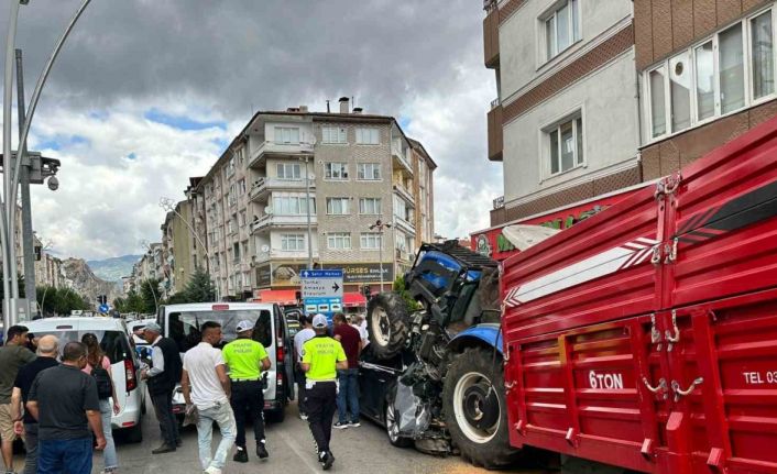 Kaza 11.00 sıralarında GOP bulvarı üçgen kavşakta meydana geldi. Sivas istikametinden merkeze doğru ilerleyen S.A. yönetimindeki 60 BG 914 plakalı traktör iddiaya göre frenini boşalması nedeniyle duramadı. 4 araca vuran traktör bir aracın da üstüne çıkarak durabildi. Kazada traktör sürücüsü yaralandı. Yaralı sürücü ambulansla Tokat Devlet Hastanesi’ne kaldırıldı. Kaza nedeniyle traktör römorkunda bulunan buğdaylar yola saçıldı. Tokat Belediyesi Temizlik Müdürlüğü ekipleri yola dökülen buğdayları temizledi. Kaza ile ilgili inceleme başlatıldı.