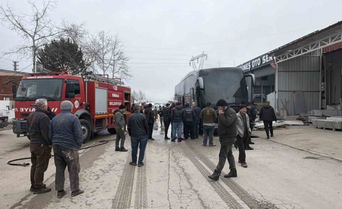 Tokat’ın Erbaa ilçesinde Küçük Sanayi Sitesi içerisinde park halinde bulunan bir otobüs, çıkan yangında kullanılamaz hale geldi.