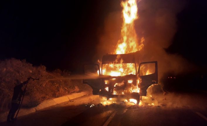 Tokat’ta seyir halindeyken alev alan tırın kupası tamamen yanarak kullanamaz hale geldi.