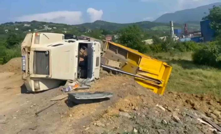 Bartın’da toprak boşaltan kamyonun devrildiği kazada sürücü yaralandı.