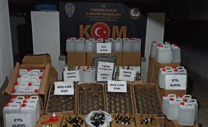 Edinilen bilgiye göre, Trabzon Emniyet Müdürlüğü Kaçakcılık ve Organize Suçlarla Mücadele Şube ekipleri tarafından Ortahisar ilçesinde sahte alkol operasyonu düzenlendi. Yapılan operasyonda 174 adet 5’er litrelik 870 litre etil alkol, 205 adet siyah renkli şişe kapağı, 20 adet sarı renkli şişe kapağı, 594 adet 1 litrelik boş cam şişe, 99 adet 0.7 litrelik boş cam şişe, 20 adet 5 litrelik boş etil alkol bidonu, 5 adet 0,5 litrelik pet şişe içerisinde yapma viski olduğu değerlendirilen sahte alkollü içki, 1 adet 0,5 litrelik pet şişe içerisinde yapma votka olduğu değerlendirilen sahte alkollü içki, 3 adet 1 litrelik cam şişelerde sahte alkollü içki, 1 adet büyük şeffaf kova içerisinde 10 litrelik yapma votka olduğu değerlendirilen sahte alkollü içki, 1 adet kırmızı renkli huni ve 2 adet 2 metre uzunluğunda hortum ele geçirildi. Yapılan operasyonda O.S. ve M.Y. isimli şahıslar gözaltına alınırken, şahısların emniyetteki sorgusunun devam ettiği öğrenildi.Trabzon’da sahte alkol operasyonu