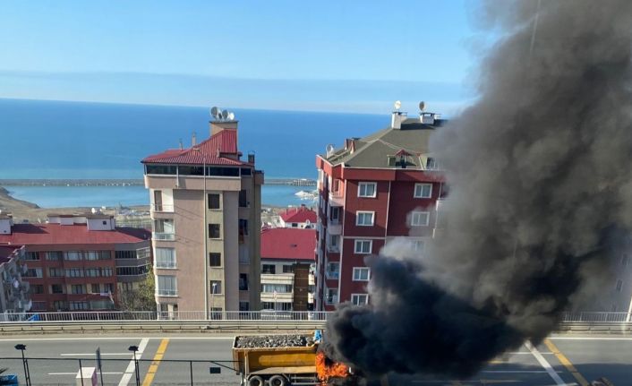 Trabzon’un Ortahisar ilçesi Kanuni Bulvarı’nda bir taş kamyonunda çıkan yangın korkuttu.