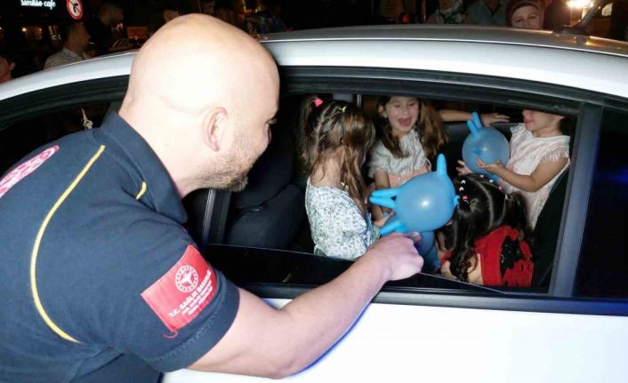 Samsun’da trafik kazasından korkan 4 çocuğun yüzünü ambulans şoförü güldürdü.
