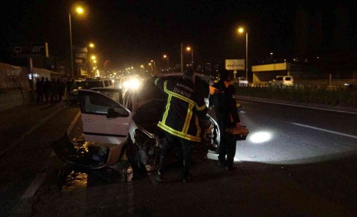 Kayseri’de sürücüsünün trafikte makas attığı otomobil önce bir araca, ardından da duvara ve aydınlatma direğine çarptı. Ağır yaralanan sürücü hastaneye kaldırıldı.