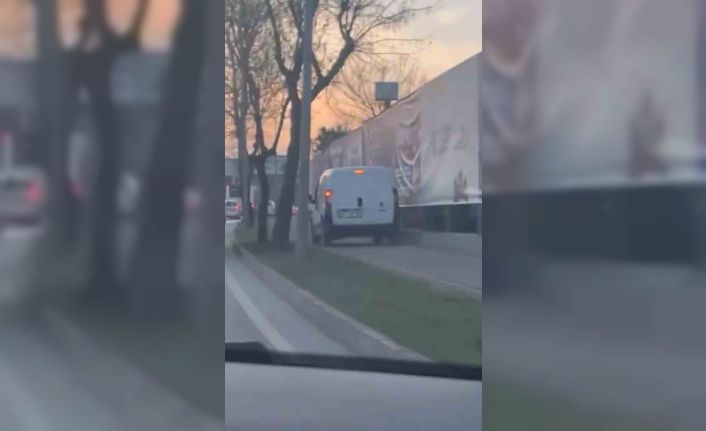 Bursa’da bir sürücü, trafikten kaçmak için aracıyla kaldırıma çıktı. İlginç anlar amatör kameraya yansıdı.
