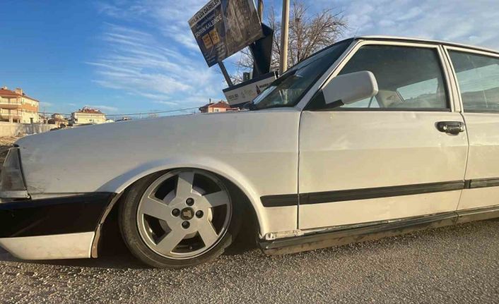 Karaman’da polisin uygulama noktasında durdurulan abartı egzozlu ve yere yakın Tofaş otomobil trafikten men edildi. Havalı süspansiyon kompresörü bozulunca yere yapışan otomobil uzun uğraşlar sonucu çekiciye yüklendi.