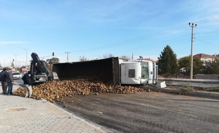 Traktörle çarpışan tırda yüklü pancarlar yola saçıldı