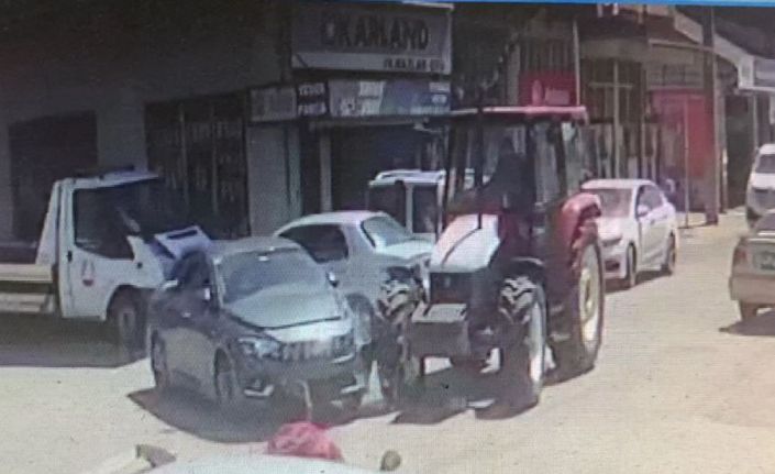 Tekirdağ Çorlu’da traktörle otomobilin çarpışması sonucu 1 kişinin yaralandığı kaza kameraya yansıdı.