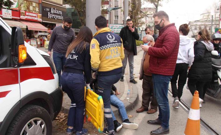 Kocaeli’de tramvaya çarpmamak için aniden manevra yapan motosiklet sürücüsü takla atarak yaralandı.