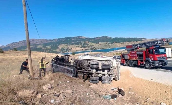 Tunceli’de freni patlayan kamyon devrildi. Sürücüsünün araçtan fırladığı araç hurdaya döndü.