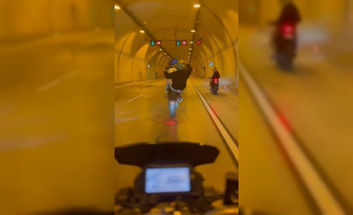 Şişli Bomonti-Dolmabahçe Tüneli’nde motosikletle ilerleyen 4 kişilik bir arkadaş grubu, trafiği ciddi şekilde tehlikeye attı. Sürücülerden birisi motosikletin önünü havaya kaldırarak tek tekerlek gösterisi yaptı. Motosikletin önünü kaldırarak metrelerce giden sürücüyü başka bir motosikletli arkadaşı cep telefonu kamerasıyla kayıt altına aldı. Motosikletli gençlerin tehlike saçtığı o anlar sosyal medya hesaplarından da paylaşıldı.