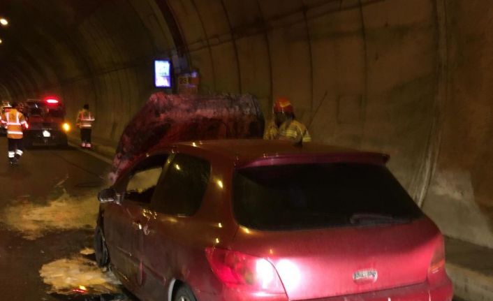 İstanbul-İzmir otoyolunun Orhangazi tünelinde seyir halindeki araç alev aldı. Otomobilde büyük hasar meydana geldi.