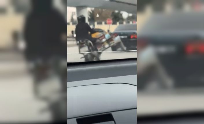 Olay, Rüstempaşa Mahallesi’nde meydana geldi. Edinilen bilgiye göre, mutfak tüpü taşıyan bir motosikletli, sepetin olduğu kısmın tekerleklerini kaldırarak trafikte seyir etti. Hem kendi canını hem de diğer sürücülerin canını atan sürücü, başka bir araçta bulunan vatandaşın cep telefonu kamerasına yansıdı. Trafikte tehlikeli hareketlerde bulunan motosikletli bir süre sonra gözden kayboldu.