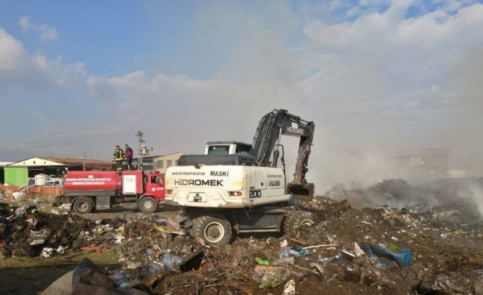 itfaiye ekipleri sevk edildi. Kısa süre olay yerine gelen ekipler yangına iş makineleriyle birlikte müdahale etti. Kontrol altına alınan yangında soğutma işlemleri devam ederken, yangının çıkış sebebi araştırılıyor.