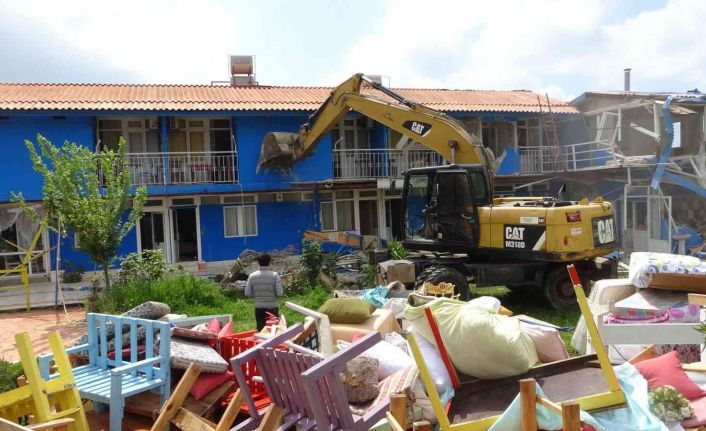Turizm bölgesinde sit alanında bulunan otel belediye tarafından yıkıldı