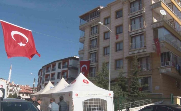 Ankara’nın Kahramankazan ilçesinde bulunan TUSAŞ tesislerine biri kadın 2 PKK’lı terörist tarafından gerçekleştirilen saldırıda 1’i taksi şoförü, 4’ü TUSAŞ personeli 5 vatandaş şehit olmuştu. Şehit güvenlik görevlisi Atakan Şahin Erdoğan’ın Keçiören ilçesinde bulunan baba ocağına Türk bayrağı asılarak, evin önüne taziye çadırı kuruldu.