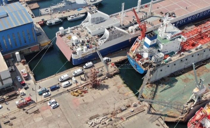 Tuzla’da bir tersanede bulunan gemide bakım onarım çalışması sırasında karbondioksit sızıntısı oluştu. Karbondioksit sızıntısı nedeniyle gaz zehirlenmesine maruz kalarak yaralanan 4 işçi hastaneye kaldırıldı. Olayın yaşandığı gemi havadan görüntülendi.