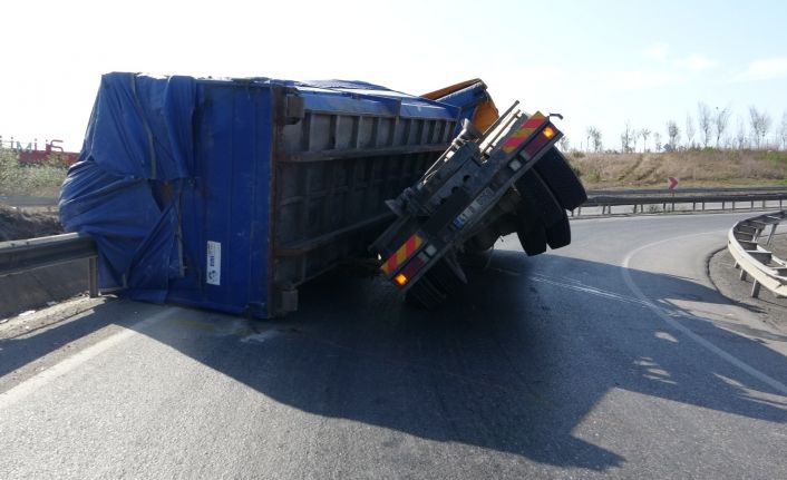 Tuzla’da saat 10.00 sıralarında meydana gelen olayda, kasasında cam elyaf yüklü 41 D 0068 plakalı Mercedes marka kamyonun sürücüsü, virajı döndüğü sırada aracın kontrolünü kaybetti. Yan yatan kamyonun kasası yola devrilirken kamyonun kupası ise askıda kaldı. Kamyon sürücüsü kazayı yara almadan atlatırken, ihbar üzerine olay yerine polis ve itfaiye ekipleri sevk edildi. Kaza nedeniyle yolda bir süreliğine trafik akışı aksadı. Öte yandan kaza esnasında kamyonun çevresinde başka bir aracın olmaması olası bir facianın önüne geçti.