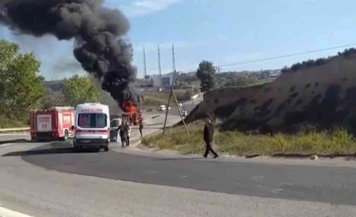Tuzla’da virajı döndüğü sırada damperinin kalkmasıyla kontrolden çıkan hafriyat kamyonu yola devrildi. Yan yatan kamyon alev alarak yanmaya başladı. Devrilen kamyonun alevlere teslim olduğu anlar cep telefonu kamerasına yansıdı.