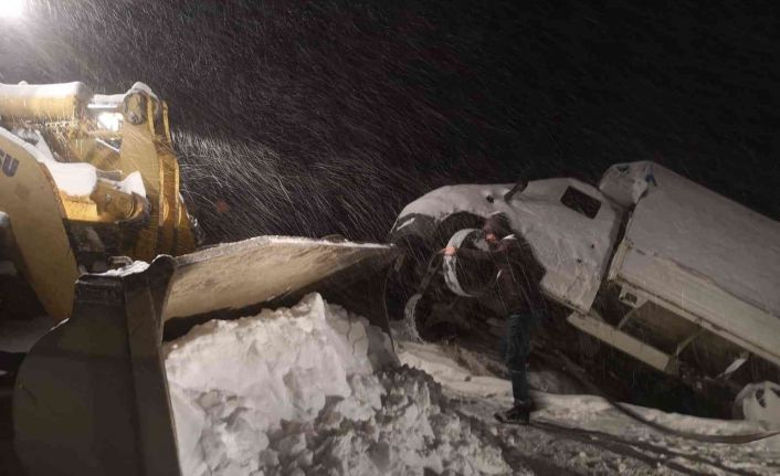 Adıyaman’ın Sincik ilçesinde kar ve tipi nedeniyle uçurumda asılı kalan araç, iş makineleri tarafından kurtarıldı.