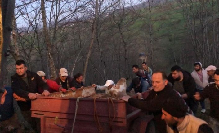 Samsun’da uçurumdan yuvarlanan inek itfaiye ekipleri tarafından kurtarıldı.