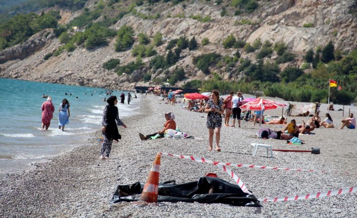 Öte yandan sahildeki cenaze ve polis ekiplerinin çalışmasına rağmen, bazı tatilcilerin yüzmeye devam ettiği görüldü.