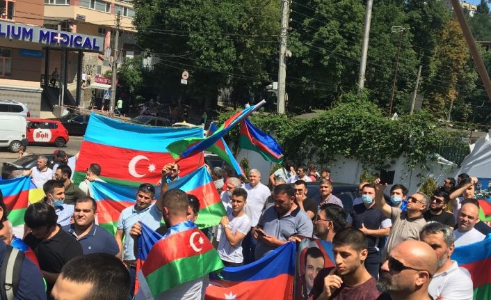 Ermenistan’ın Azerbaycan-Ermenistan sınırındaki saldırılarına tepkiler devam ediyor. Ukrayna’nın başkenti Kiev’de bulunan Azerbaycan Büyükelçiliği önünde toplana yüzlerce Azerbaycan vatandaşı Ermenistan’ın saldırılarını protesto etti. Azerbaycanlılar “Karabağ’a azatlık”, “Yaşasın Azerbaycan yaşasın Türkiye” ve “Şehitler ölmez vatan bölünmez” sloganları atarak, ülkelerine olan desteklerini dile getirdiler. Azerbaycanlılar, ellerinde Azerbaycan, Türkiye ve Ukrayna bayrakları ile çatışmalarda şehit olan askerlerin fotoğraflarını taşıdılar. Protesto sırasında şehitler için 1 dakikalık saygı duruşu yapıldı.