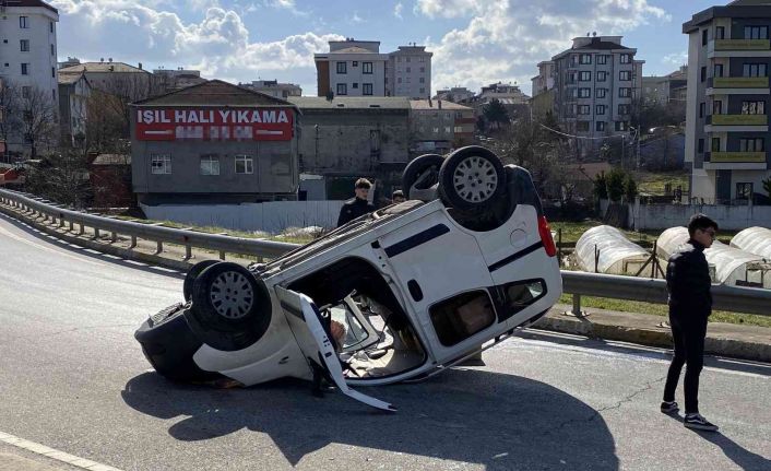 Ümraniye’de Şile Otoyolunda saat 14.30 sıralarında yaşanan kazada, 34 JL 0453 plakalı Fiat marka hafif ticari araç, iddiaya göre sürücünün direksiyon hakimiyetini kaybetmesiyle Dudullu yol ayrımında kaldırıma çarpıp takla attı. Yolda ters dönen ticari aracın sürücüsü sıkışarak yaralandı. Durumun bildirilmesi üzerine olay yerine itfaiye, sağlık ve polis ekipleri sevk edildi. Aracından çıkarılan sürücü sağlık ekiplerinin müdahalesinin ardından ambulans ile hastaneye kaldırıldı. Yaşanan kaza nedeniyle Şile Otoyolu Şile yönünde trafik yoğunluğu oluştu. Polis ekipleri kaza ile ilgili çalışma yürüttü.