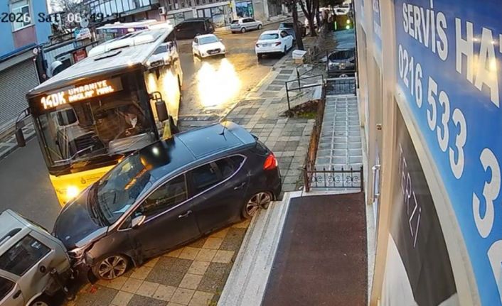 Ümraniye’de kadın şoförün kullandığı İETT otobüsü, şoförün direksiyon hakimiyetini kaybetmesi sonucu park halindeki araçlara çarptı. Kaza anı cadde üzerindeki bir iş yerinin güvenlik kamerasınca kaydedildi.