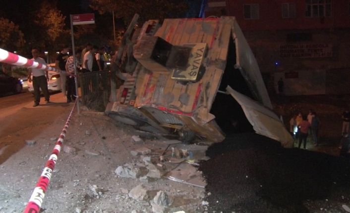 Olay, Ümraniye Küçüksu Caddesi’nde, saat 22.30 sularında meydana geldi. İddiaya göre, zift dökme aracını virajda başka bir araç sıkıştırdı. Bunun üzerine asfalt yama aracının sürücüsü A.A, direksiyonu kırdı ve yolda yürüyen aileye çarpmamak için kamyonu istinat duvarından aşağı sürdü. 2 katlı müstakil eve de çarpan araç takla attı. İhbar üzerine çevreye polis ve ambulans ekipleri geldi. Hafif yaralanan kamyon şoförü A.A, ilk müdahalenin ardından hastaneye kaldırıldı. Kamyonun çarptığı binada ise maddi hasar oluştu.