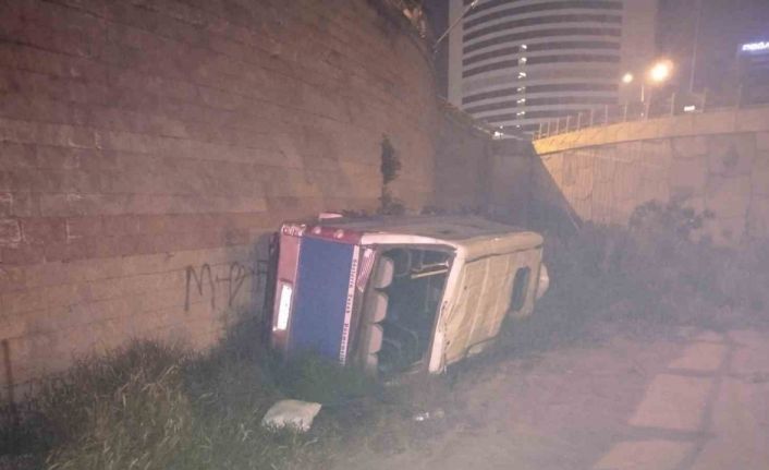 Olay saat 23.30 sularında Yamanevler Mahallesi Tek Sokak’ta meydana geldi. Edinilen bilgiye göre otoyola çıkmakta olan 34 M 2314 plakalı minibüs kontrolden çıkıp bariyerleri aşarak sokak üzerindeki arsaya uçtu.