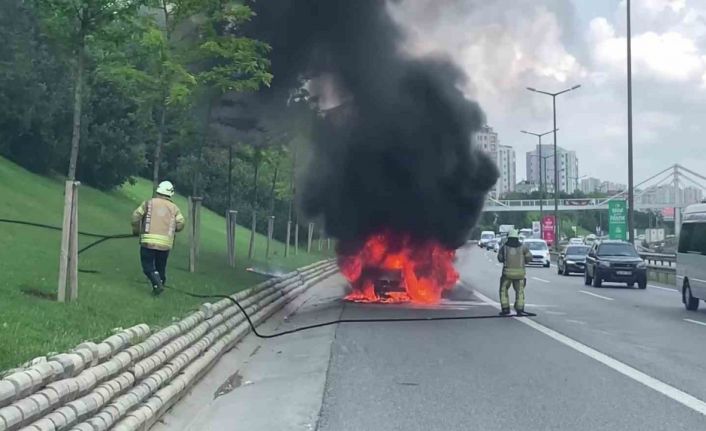 Ümraniye’de yol üzerinde ilerleyen otomobilinden dumanlar yükseldiğini fark eden sürücü aracını sağa çekerek indi. Alevler kısa sürede otomobili sardı. Alev alev yanan otomobili görenlerin ihbarı üzerine olay yerine itfaiye ekipleri sevk edildi. İtfaiye ekipleri yanan otomobile müdahale ederek söndürürken araçta maddi hasar meydana geldi. Otomobilin yandığı anlar ise cep telefonu kamerasına yansıdı.