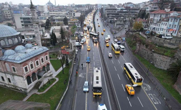 Fatih Unkapanı’nda 2 İETT otobüsü çarpıştı. İETT otobüslerinden biri refüje çarparak durabilirken kazada 8 kişi yaralandı. Kaza nedeniyle oluşan uzun araç kuyrukları drone ile görüntülendi.
