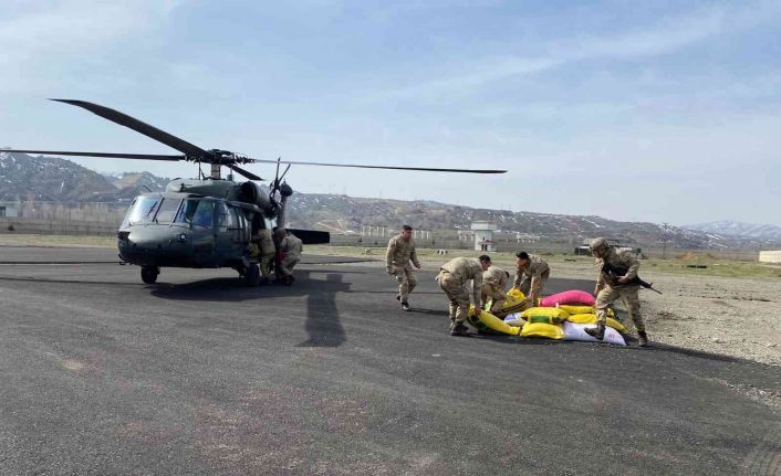 Bingöl’ün Genç ilçesinde kar nedeniyle yolun kapalı olmasından dolayı hayvanlarına yem ulaştıramayan üreticinin imdadına jandarma yetişti. Askeri helikoptere yüklenen yemler köye ulaştırıldı.