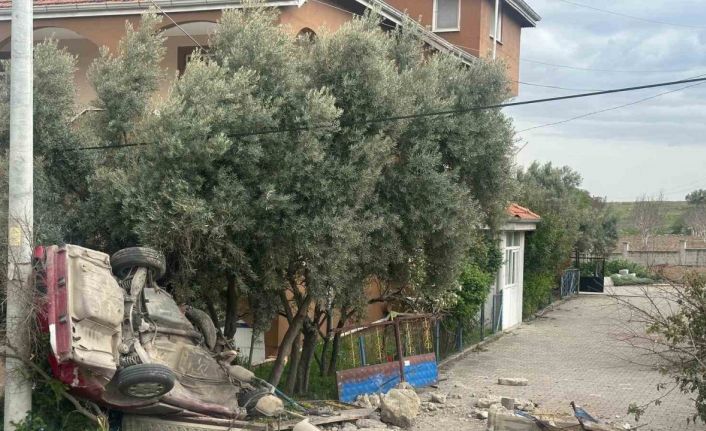 Uşak’ta bir otomobilin evin bahçe duvarına çarpıp devrilmesi sonucu meydana gelen kazada 1 kişi hayatını kaybetti, 1 kişi ağır yaralandı.