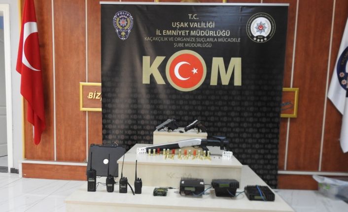 Uşak İl Emniyet Müdürlüğüne bağlı Kaçakçılık ve Organize Suçlarla Mücadele Şube Müdürlüğü (KOM) ekipleri, yapılan istihbarat çalışmaları doğrultusunda silah ve mühimmat kaçakçılarına yönelik operasyon düzenledi. 9 adreste yapılan aramada 4 adet ruhsatsız tabanca, 1 adet ruhsatsız tüfek, 80 adet fişek, 4 adet el telsizi, 4 adet masa telsizi ve 11 adet sentetik ecza hap ele geçirildi. Operasyonda yakalanan 5 şahıstan 1’i sevk edildiği mahkemece tutuklanırken, 4 kişi serbest bırakıldı. Öte yandan 1 kişiyi arama çalışmaları da devam ediyor.Uşak’ta silah kaçakçılarına yönelik operasyonda 1 kişi tutuklandı