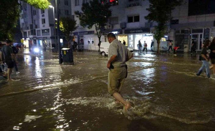 Uşak’ta akşam saatlerinde etkili olan yağmur sonrası yollar adeta göle döndü.