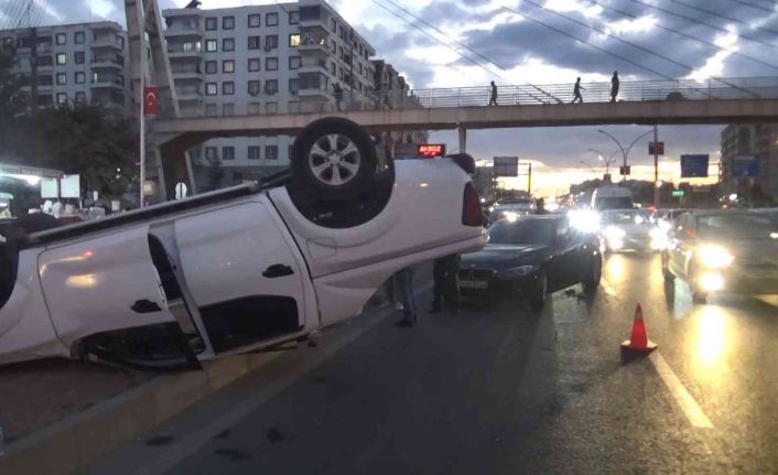 Diyarbakır’da üst geçidi kullanmayıp refüjdeki korkulukların üzerinden atlayarak karşıya geçmeye çalışan çocuklara çarpmamak için sürücüsünün direksiyonu kırdığı araç takla atarak durabildi. Araçtaki 2 kişi kazadan burunları kanamadan kurtuldu.
