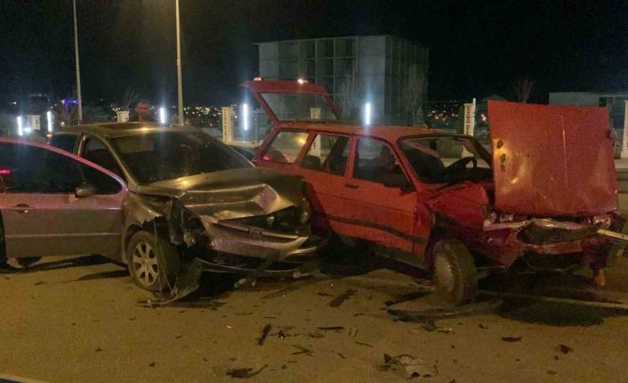 Üst geçitte iki otomobil kafa kafaya çarpıştı: 2 yaralı