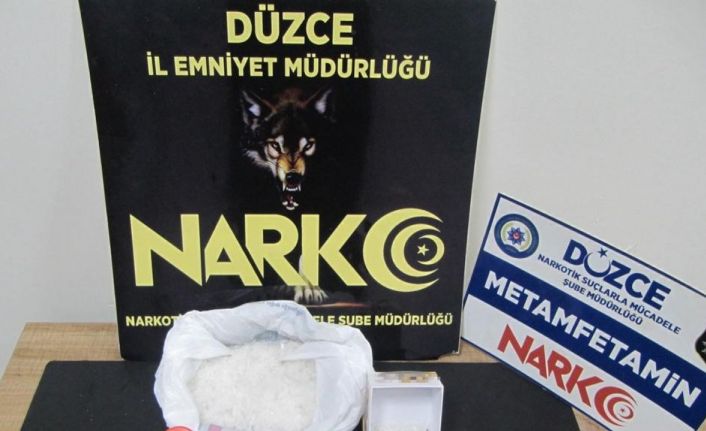 Düzce Emniyet Müdürlüğü Narkotik Suçlarla Mücadele Şube Müdürlüğünce Cumhuriyet Başsavcılığı koordinesinde yürütülen çalışmada, uyuşturucu madde sevkiyatı yaptığı tespit edilen şüpheli 2 şahıs yapılan operasyon neticesinde yakalandı. Yakalanan şahısların üzerlerinde yapılan aramalarda, 3 parça halinde toplam 355 gram metamfetamin maddesi ele geçirildi.