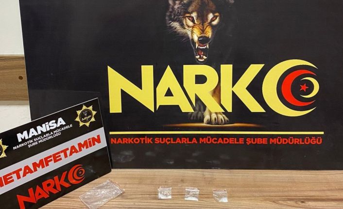 Manisa İl Emniyet Müdürlüğü Narkotik Suçlarla Mücadele Şube Müdürlüğü ve Asayiş Şube Müdürlüğü görevlilerince uyuşturucu veya uyarıcı madde ticareti yapan, nakleden ve kullanan şahıslara yönelik yapılan çalışmalarda Yunusemre ilçesinde şüphe üzerine durdurulan bir şahsın üzerinde yapılan aramada, 9 parça halinde 5,77 gram metamfetamin maddesi ve uyuşturucu madde paketlemede kullanılan kilitli poşetler ele geçirildi. Konuyla ilgili S.B. (25) isimli şahıs uyuşturucu veya uyarıcı madde imal ve ticareti yapmak suçundan gözaltına alındı. S.B. emniyetteki işlemlerinin ardından sevk edildiği adli makamlarca tutuklandı.