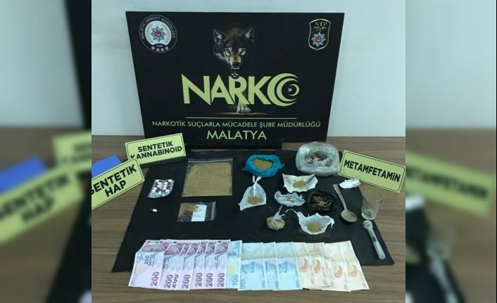 Edinilen bilgiye göre, Malatya Emniyet Müdürlüğü Narkotik Suçlarla Mücadele Şube Müdürlüğü görevlilerince uyuşturucu satıcılarına yönelik 4 ayrı operasyon düzenlendi. Yapılan çalışmada, 1 kilo 586 gram esrar, 265 gr sentetik kannabinoid, 26 adet yeşil reçeteye tabi hap, 21,54 gr metamfetamin, 1 adet ruhsatsız tabanca ile uyuşturucu madde ticaretinden kazanıldığı değerlendirilen toplam 7 bin 250 TL ele geçirildi.