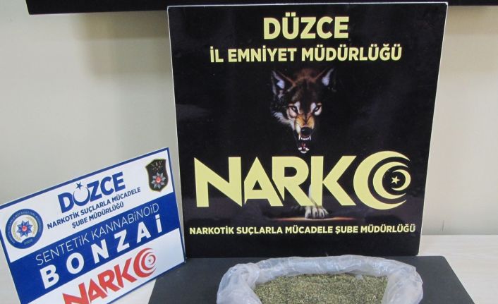 Düzce İl Emniyet Müdürlüğü Narkotik Suçlarla Mücadele Şube Müdürlüğü ekiplerince, Cumhuriyet Başsavcılığı koordinesinde yürütülen çalışmada uyuşturucu madde ticareti yaptığı tespit edilen şüpheli şahıs operasyonla yakalandı. Şüpheli şahsın üzerinde, ikametinde yapılan aramalarda; 320 gram sentetik kannabinoid maddesi ve 3 gram esrar maddesi ele geçirildi. Şüpheli şahıs tamamlanan işlemlerinin ardından uyuşturucu madde ticareti yapmak suçundan sevk edildiği Sulh Ceza Hakimliğince tutuklanarak cezaevine konuldu.