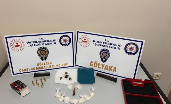 Düzce Cumhuriyet Başsavcılığı koordinesinde Gölyaka İlçe Emniyet Amirliği ekiplerince Yeşil Mahalle’deki bir ikamette uyuşturucu madde kullanıldığı istihbari bilgi üzerine yapılan çalışmalarda; 9 parça halinde 92,16 gram metamfetamin maddesi, 2 parça halinde 100 adet extacy, 1.64 gram esrar maddesi, 2,78 gram esrar maddesi, 1 hassas terazi, 11 adet 9 milimetre 19 fişek ve 2 adet şarjör ele geçirildi. Uyuşturucuya ilişkin K.U isimli şahıs tutuklandı.