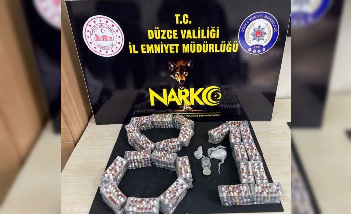 Düzce Cumhuriyet Başsavcılığı koordinesinde uyuşturucu kullananlara ve ticaretini yapanlarla mücadele bütün hızıyla devam ediyor. Bu çerçevede Düzce İl Emniyet Müdürlüğü Narkotik suçlarla Mücadele ekiplerince yapılan risk analizi çalışmalarında B.F. ve T.Y. isimli şahısların iller arasında uyuşturucu madde taşıyarak ticareti yaptığı belirlendi. Şahısları takibe alan ekipler, otobüs terminalinde yolcu otobüsünden iner inmez şahısları göz altına aldı. Şahısların yapılan üst ve valiz aramasında toplam 2675 adet sentetik ecza maddesi, 1 parça halinde 35 gram metamfetamin maddesi ele geçirildi.