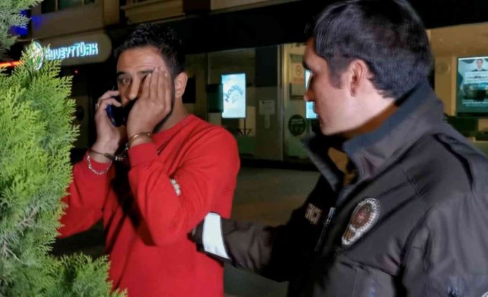 Aksaray’da polis ekiplerince yapılan uygulamada uyuşturucu madde ile yakalanan sürücü kelepçelenerek gözaltına alınınca telefonla arkadaşını arayarak, “Beni kelepçeledi polisler haberin olsun” diyerek yardım istedi.