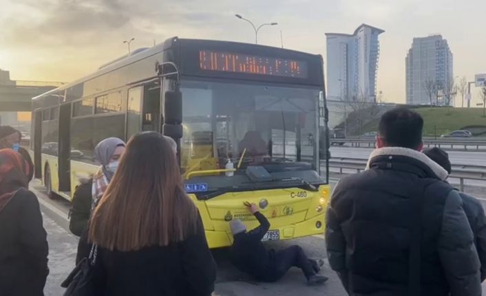Arızalanan otobüs vatandaşların cep telefonu kamerasına yansıdı. Görüntülerde vatandaşların otobüsten inip bekledikleri İETT şoförünün ise arızalanan otobüsü tamir etmeye çalıştığı görüldü.