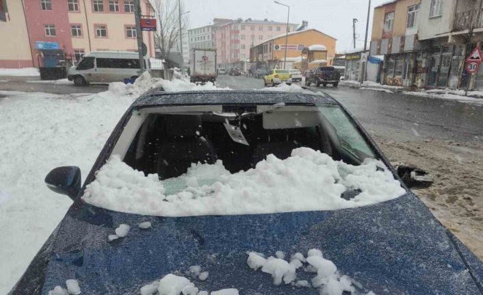 Ardahan’da üzerine çatıdan kar kütlesi düşen otomobil kullanılamaz hale geldi.