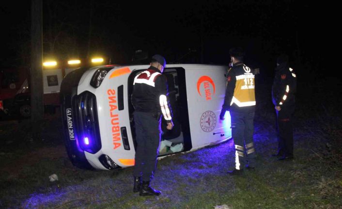 Kocaeli’de vakaya giden ambulans virajı alamaması neticesinde yan yattı. Sağlık çalışanları ise yan yatan araçtan kendi imkanlarıyla çıktı.